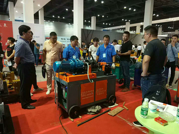 在交易會上,我公司推出了2018年研發(fā)的最新產(chǎn)品JBG-40型全自動滾絲機,該機型采用PLC可編程控制,可實現(xiàn)鋼筋的自動夾緊及機床的自動進給,鋼筋的夾緊、定位及螺紋加工可實現(xiàn)一鍵操作,操作簡便,運行穩(wěn)定,加工效率高。在現(xiàn)場分多次為數(shù)百位參會經(jīng)銷商進行了操作演示,效果良好,得到了廣大經(jīng)銷商的一致好評,會上簽訂了意向訂單十六個。